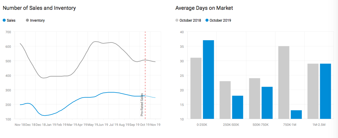 With interest rates at all time lows, during the month of October, Oshawa real estate sells on average in 20 Days. If you look at the Average days on Market Year over Year you can see that Oshawa homes are selling a lot faster in 2019 year over year. In my opinion they are selling faster because of the lower inventory levels also seen in the chart below. To see what your home would sell for in today's market please click on free-home-evaluation.